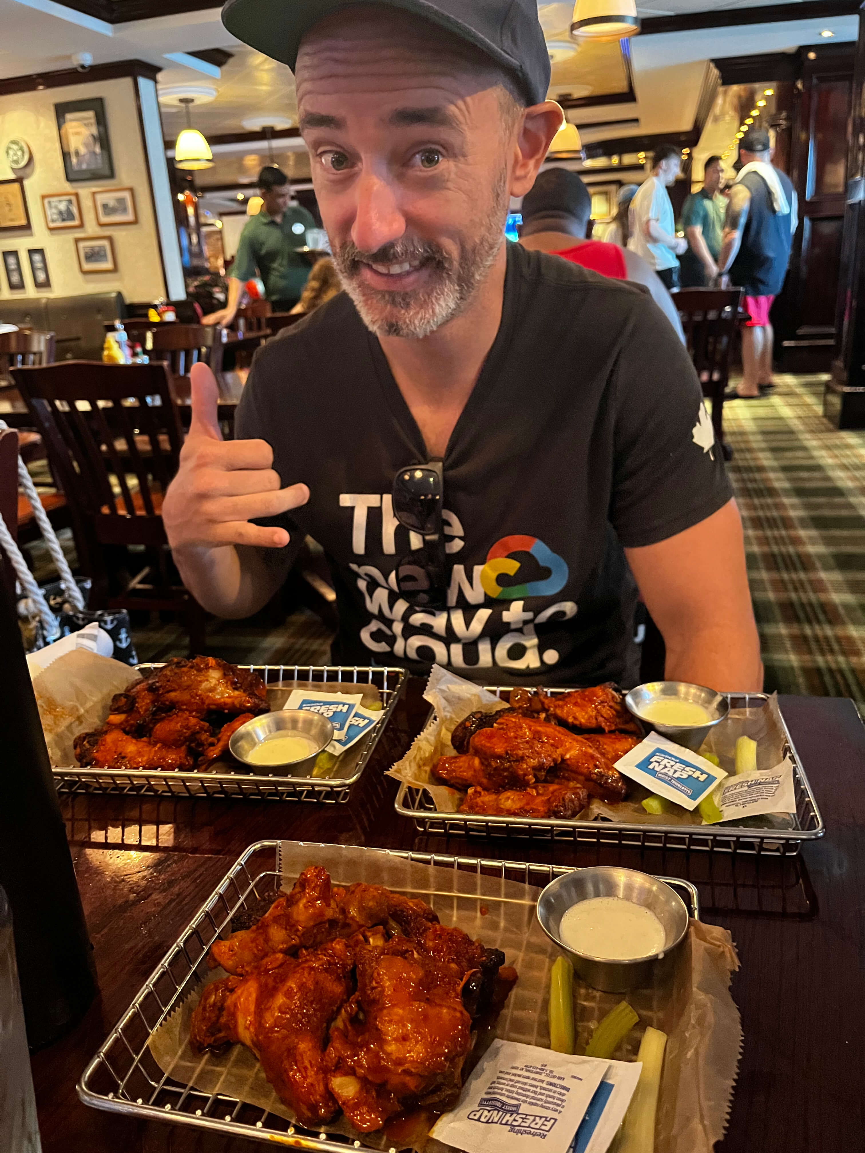 Plusieurs coup de coeur à bord du navire : les ailes de poulets disponibles à tout heure du jour et de la nuit, le gym avec ses tapis roulant devant l’immensité de la mer, les repas thématiques, la crème glacée, la journée de fête d’Emma, les questions et réponses avec l’équipage, marcher autour du pont # 7 et j’en passe…
