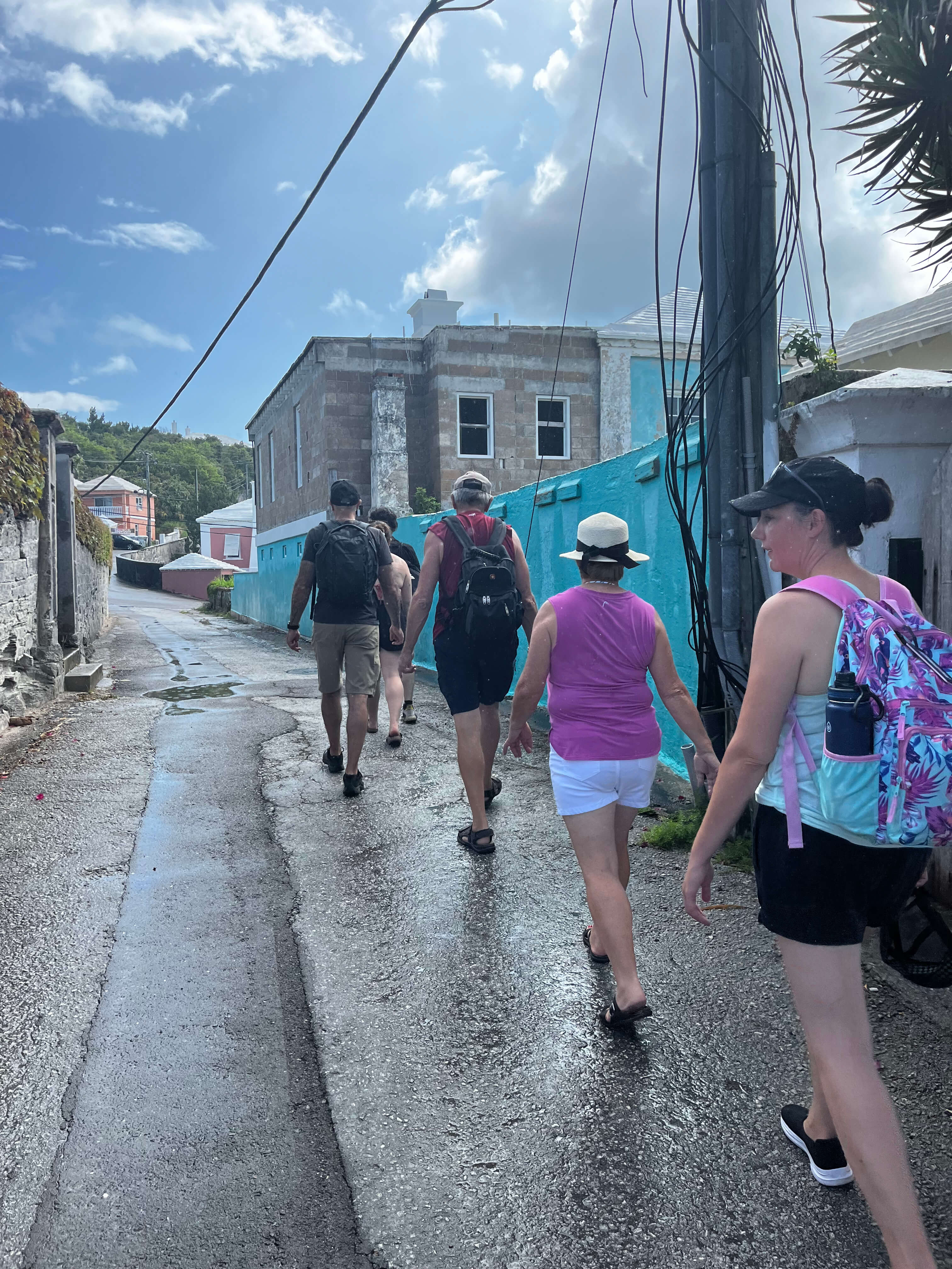 Pour notre première journée, nous nous sommes dirigés vers l’autre extrémité de l’île : St. George’s. Un ferry était disponible gratuitement quelques fois par jour, et fidèles à notre habitude de maximiser l’aventure, nous avons entraîné tout le monde pour le premier départ.