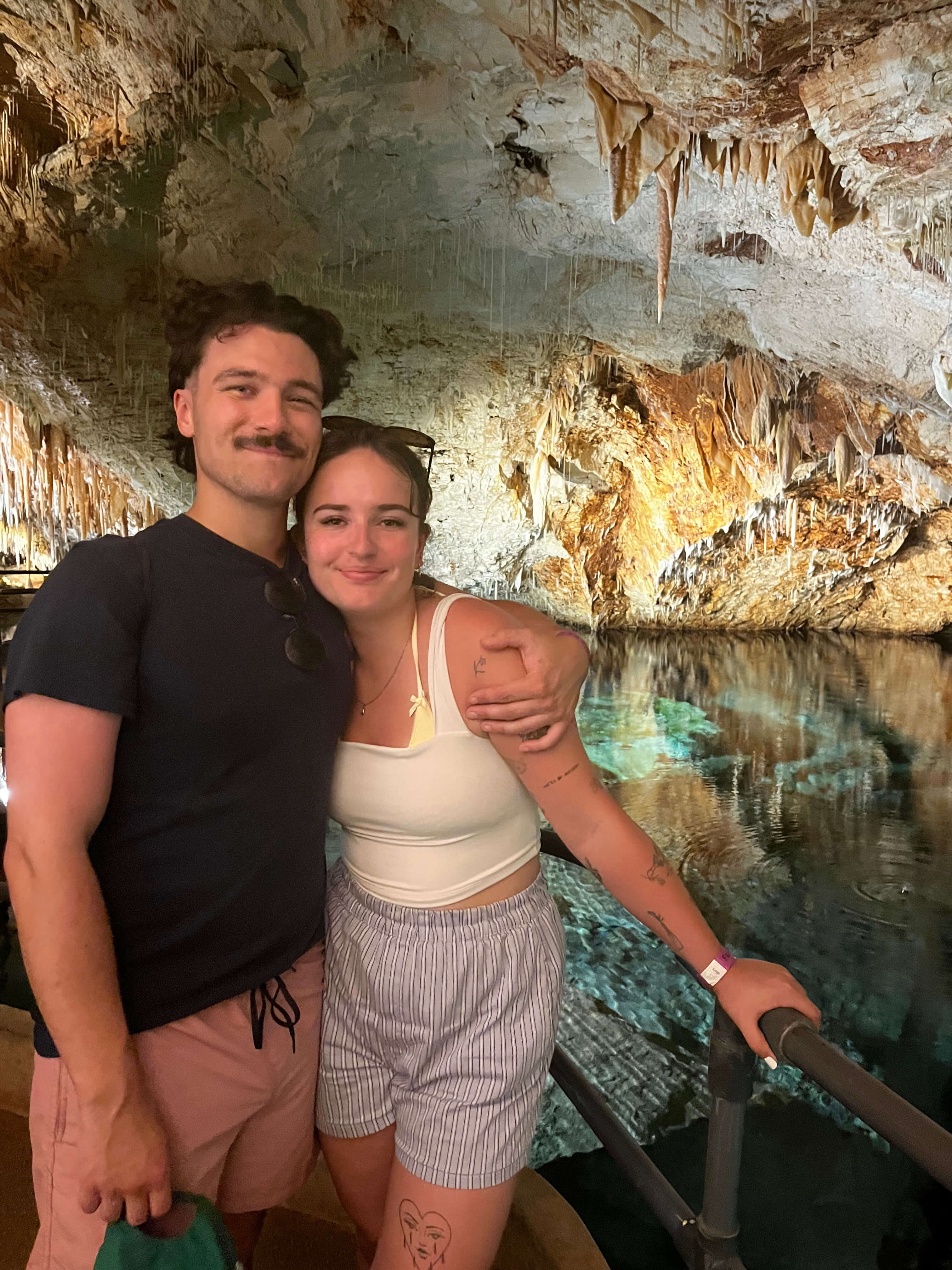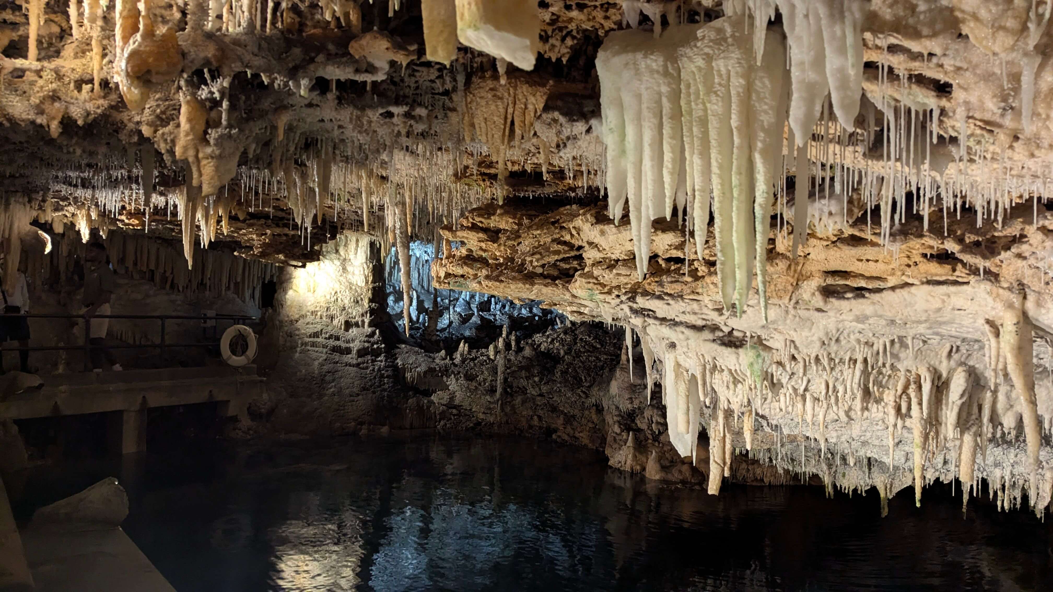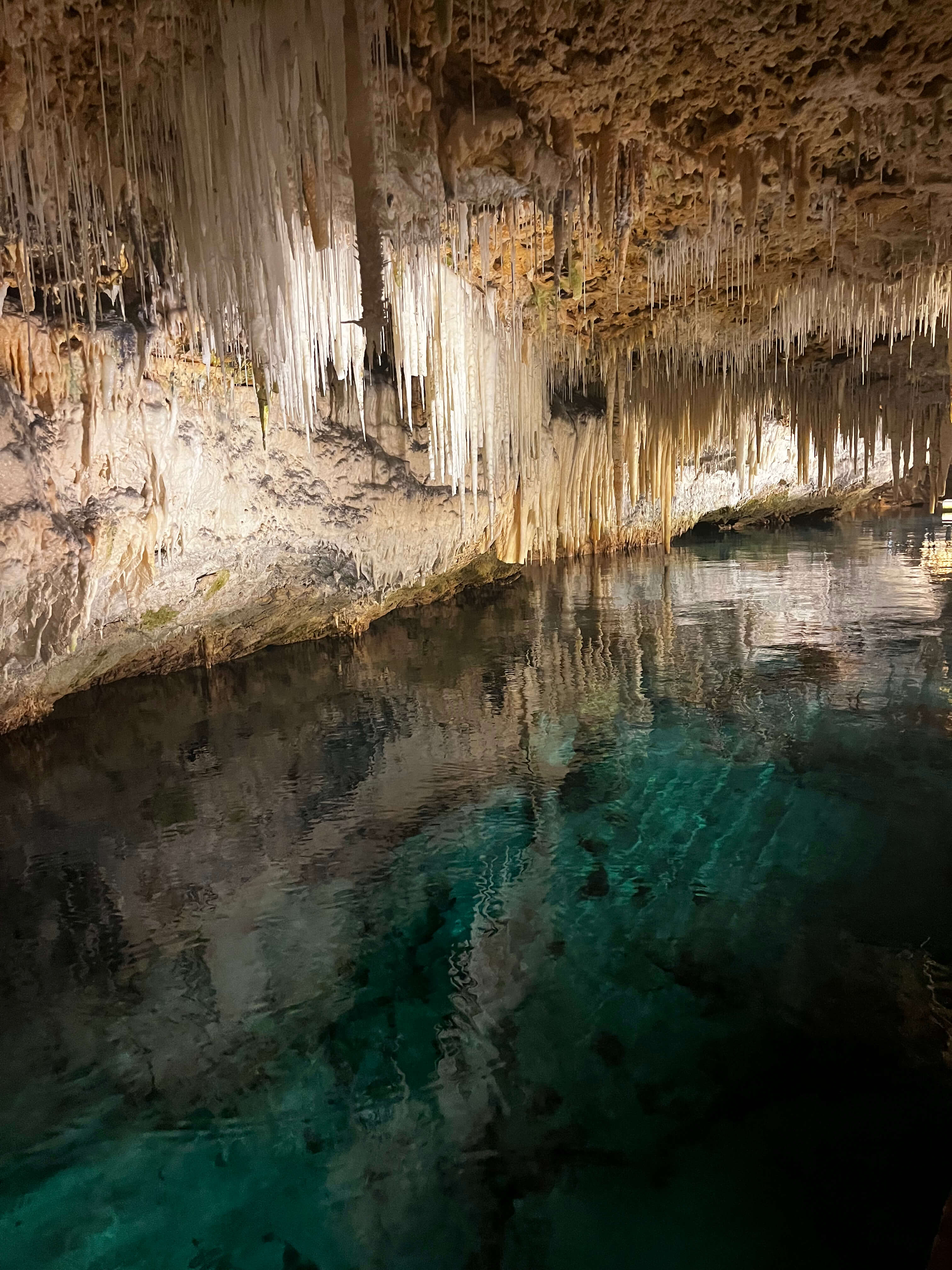 Le lendemain, même heure de départ, même destination, mais un plan différent : prendre l’autobus public depuis St. George’s pour nous rendre aux Crystal Caves. Découvertes au début des années 1900, ces grottes sont magnifiques. L’objectif est simplement de marcher et d’observer les créations spectaculaires de Dame Nature. Malgré le nombre de grottes que nous avons visitées dans nos voyages, nous n’avions jamais vu de formations de stalactites et stalagmites avec des eaux turquoise de cette sorte. L’endroit vaut définitivement le détour.