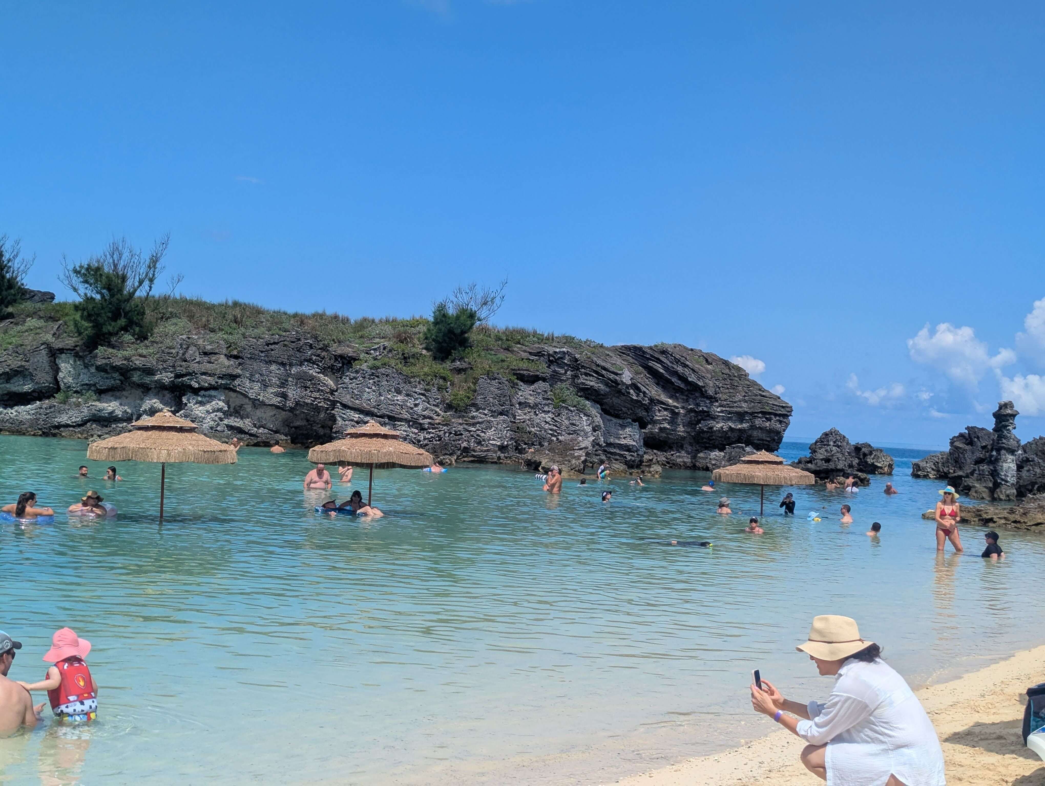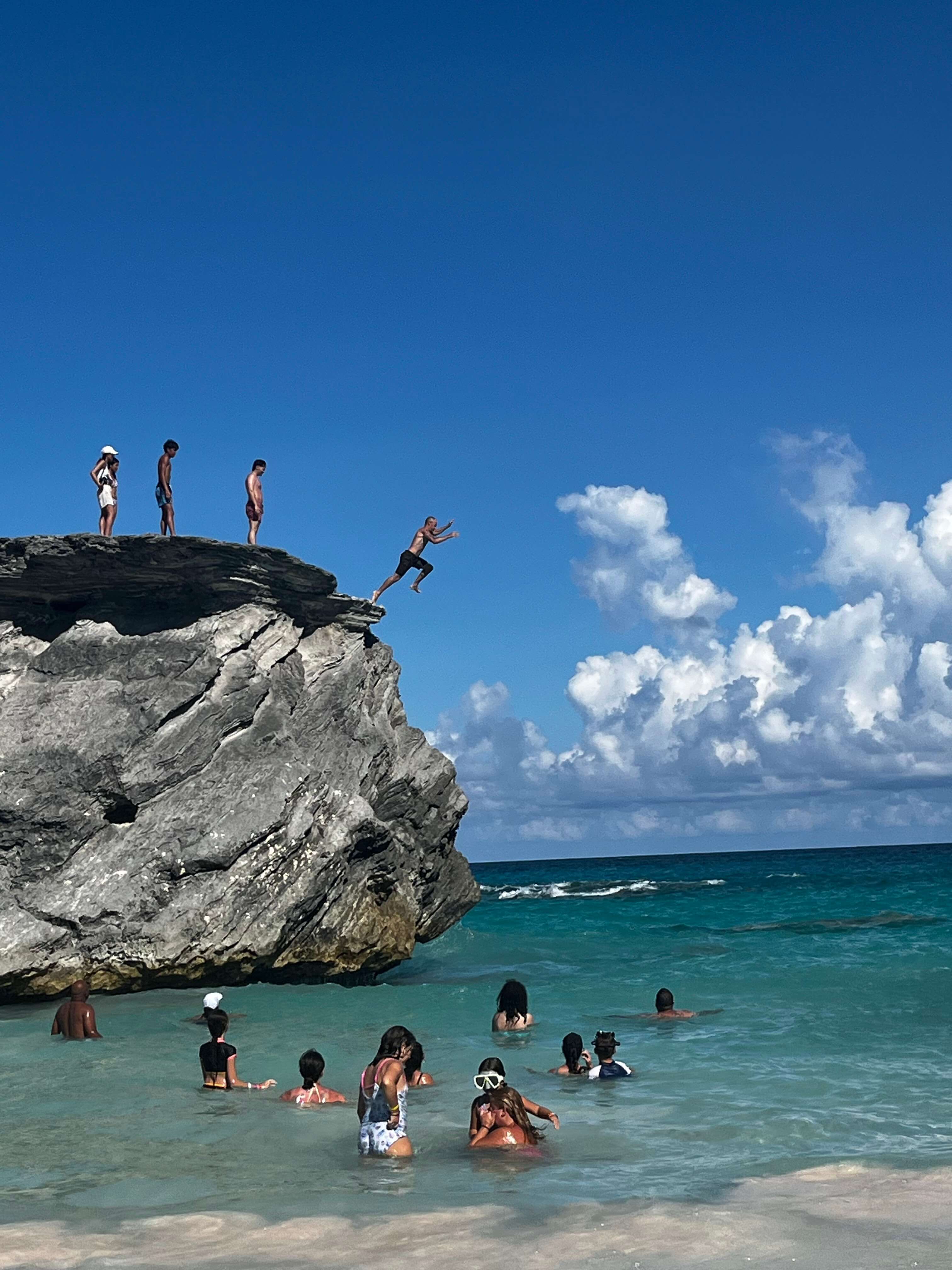 Nous avons sauté dans un autre bus, cette fois direction la célèbre Horseshoe Bay. Il faisait une chaleur écrasante. Une fois arrivés, rester sur la plage bondée sans ombre était impensable. Angèle et moi avions lu qu’à l’extrémité de la plage, il y avait : 1) moins de gens et 2) des rochers offrant de l’ombre naturelle. Nous avons fait cette longue marche sous le soleil brûlant jusqu’à la terre promise. Heureusement, c’était tout à fait vrai ! Moins de monde, de l’ombre, un endroit parfait pour se poser, siroter une bière et sauter dans la mer chaude et agréable. Nous y avons passé quelques heures. Mieux encore : Céleste, Jonathan et moi avons même fait du cliff jumping, sous les regards amusés des gens près des rochers. Une autre journée bien remplie et mémorable.