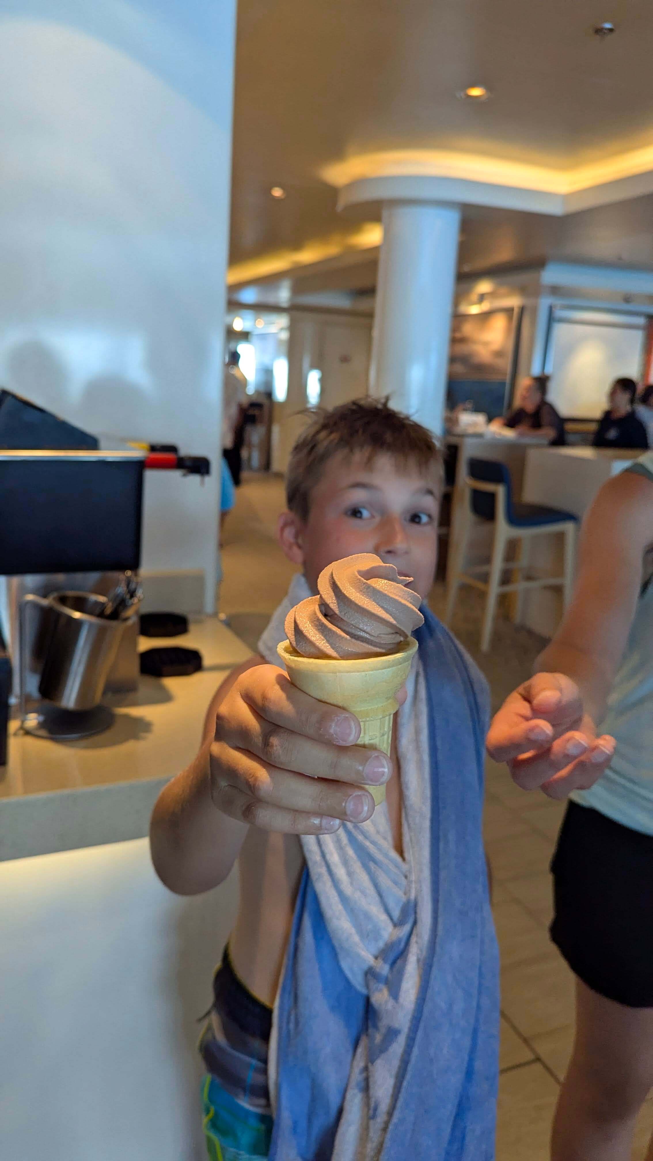 La croisière était une première pour nous tous (à l’exception de mes parents), mais nous avons vite abandonné nos petites craintes. La vie à bord est un tourbillon : activités, spectacles et la qualité de la nourriture est absolument indécente. Nous avons mangé comme des rois ! Nous avons profité des glissades d’eau (plus qu’a notre tour), de la piste d’hébertisme en hauteur, du terrain de soccer, et j’en passe. Angèle, elle, était dans un état d’excitation permanent. À plusieurs reprises, vers minuit, je devais la convaincre de rentrer, car elle voulait absolument rester jusqu’à la fin des spectacles de piano qui étaient excellent.