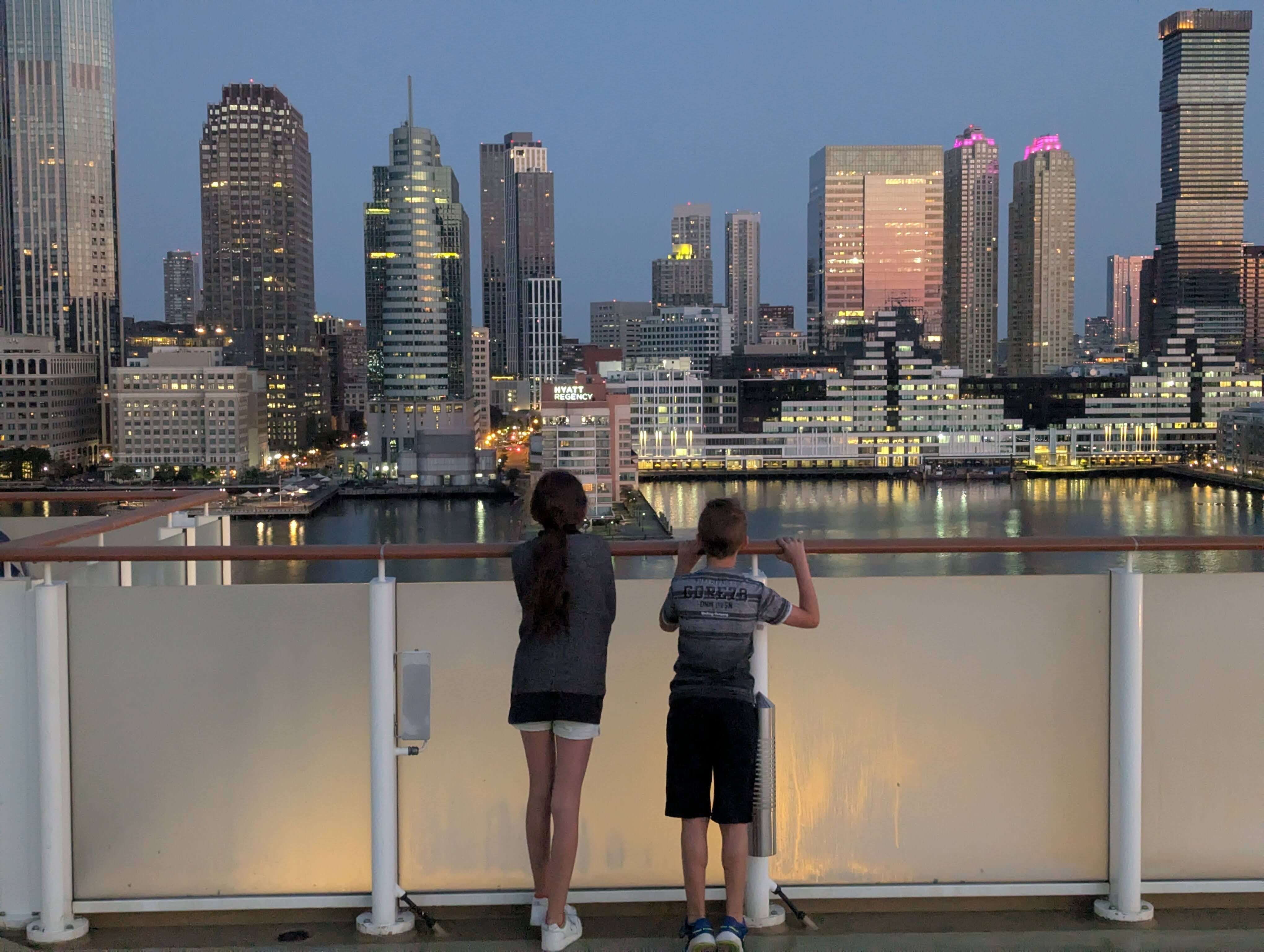 Pour le volet budget, nous avons pris une décision stratégique : faire la route vers New York. À six heures de Montréal, l’option voiture, au lieu de l’avion, était l’évidence même pour économiser gros. Cette longue journée de transition a aussi marqué une série de grandes « premières fois » pour les enfants, Alexis et Emma : Douane, États-Unis, statue de la Liberté, croisière et les jours suivants : palmiers et pays chaud ! Ils avaient les yeux grands ouverts face à l’inconnu.